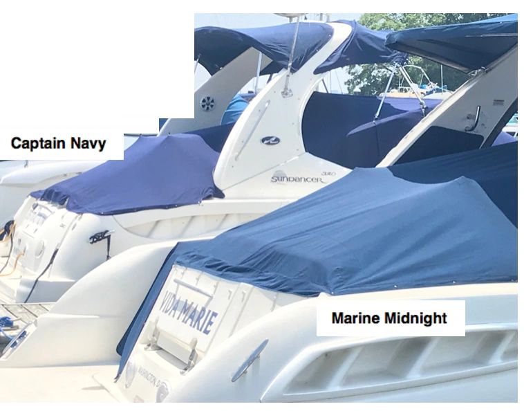 The original colors of Sunbrella canvas used in 2008 on the 240 Sundancer were: Black, Captain Navy and Marine Midnight Blue. (See color card at bottom of webpage). Your canvas can be made in any of the colors shown. The 3 red options are premium colors and the canvas is about 15% more. All prices in US dollars and do not include shipping.